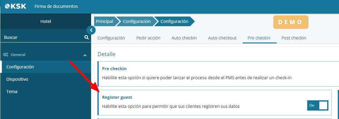 In this section, you can enable a series of actions related to the pre check-in process so that they are displayed in Ulyses KSK before the reservation check-in:
