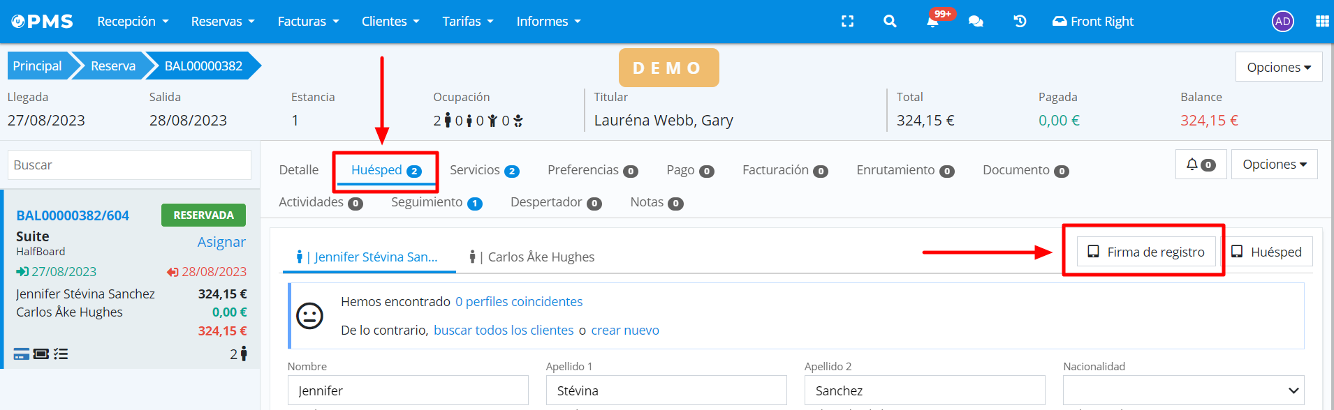 From the reservation's client cardex