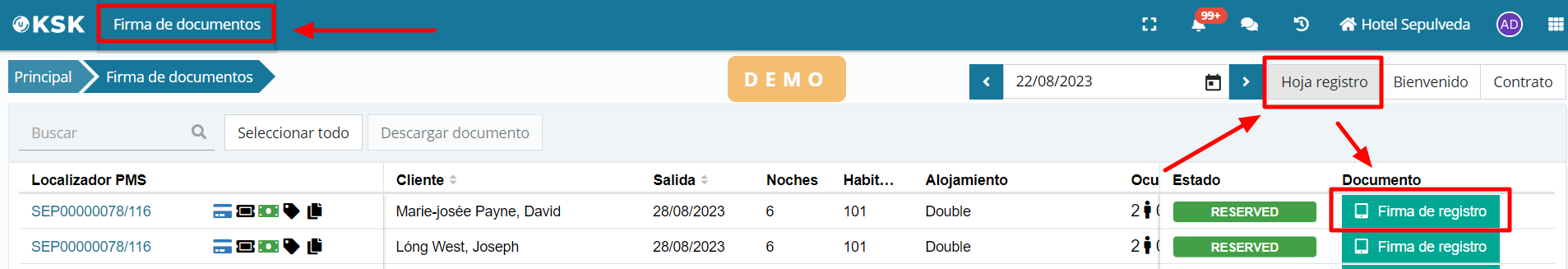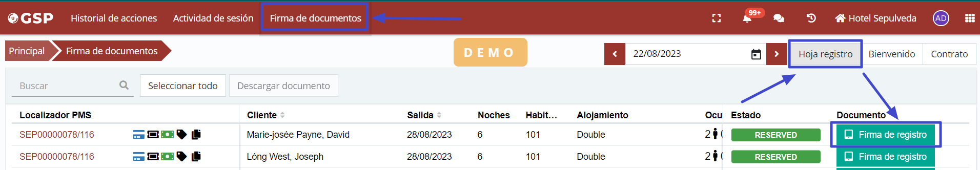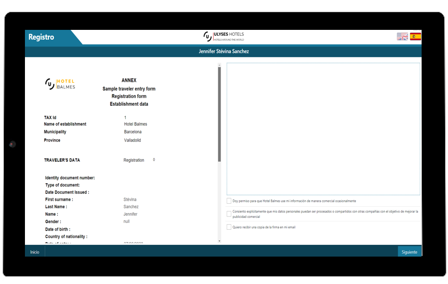 To manually launch the process from Ulyses, simply access the client's cardex in any reservation and select the registration signature option.
