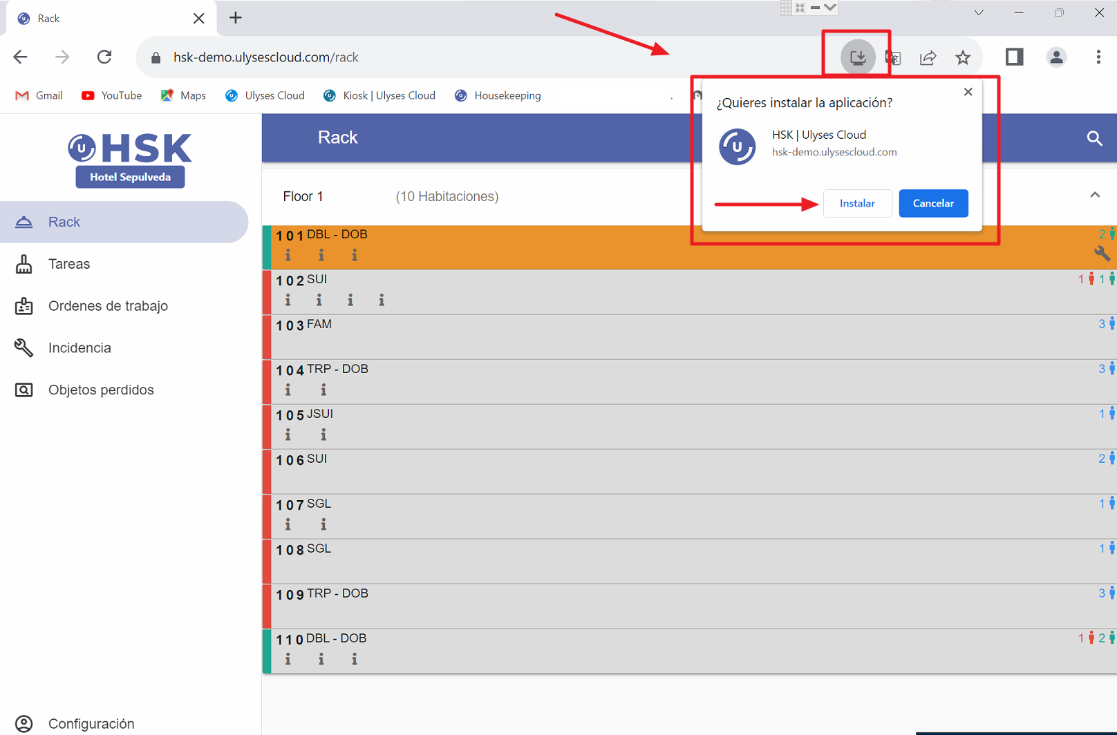 For example, if your usual address is "tudominiohotel.ulysescloud.com", in the address bar you should type "hsk-tudominiohotel.ulysescloud.com".