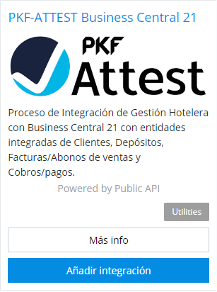 - PKF-ATTEST Business Central 21: Hotel Management Integration Process with Business Central 21 with integrated entities of Clients, Deposits, Sales Invoices/Credit Notes, and Collections/Payments.