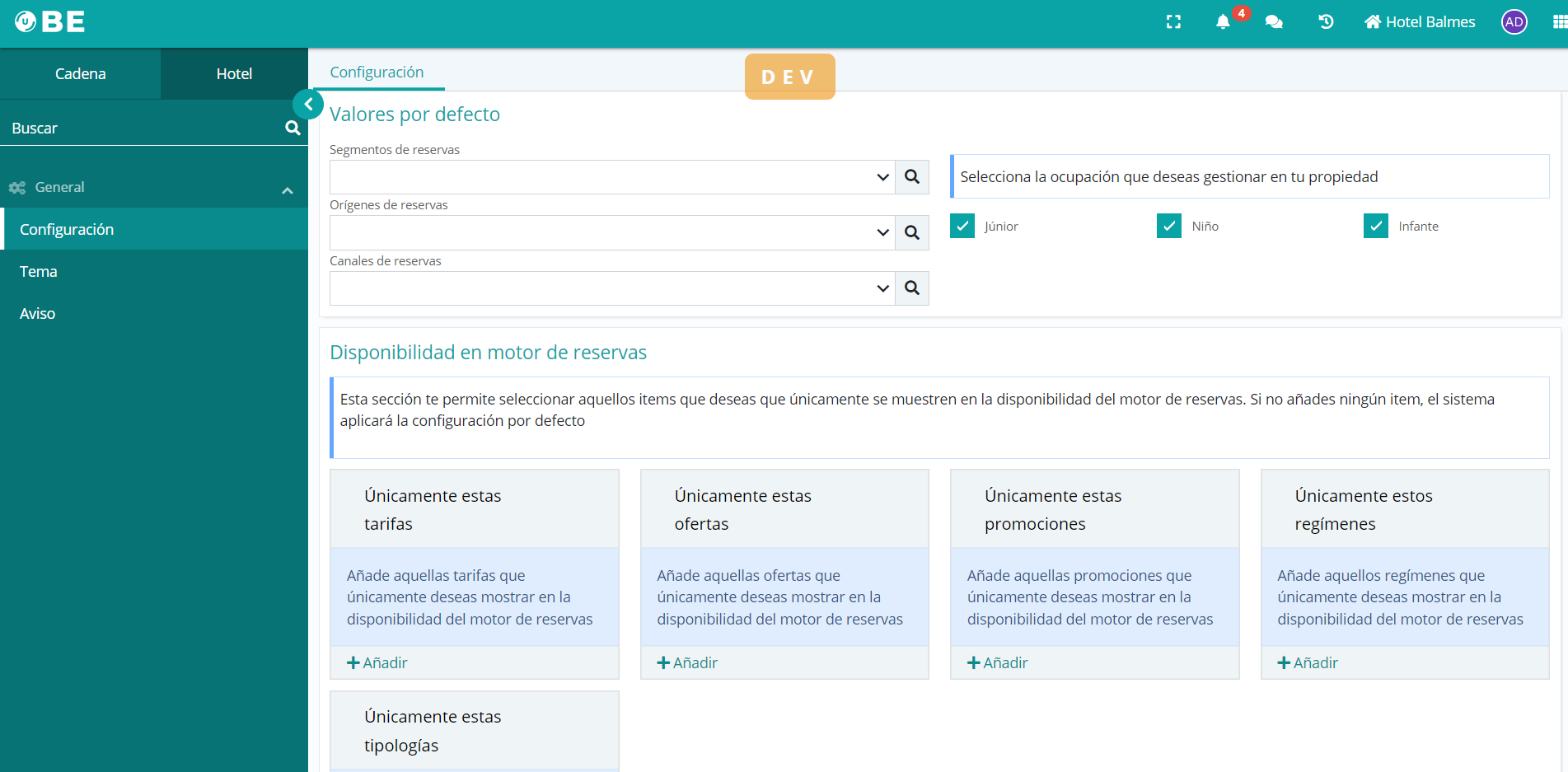 You can now define if your property will accept juniors, children, and infants. Only a brief configuration is needed. You can also choose default values.
