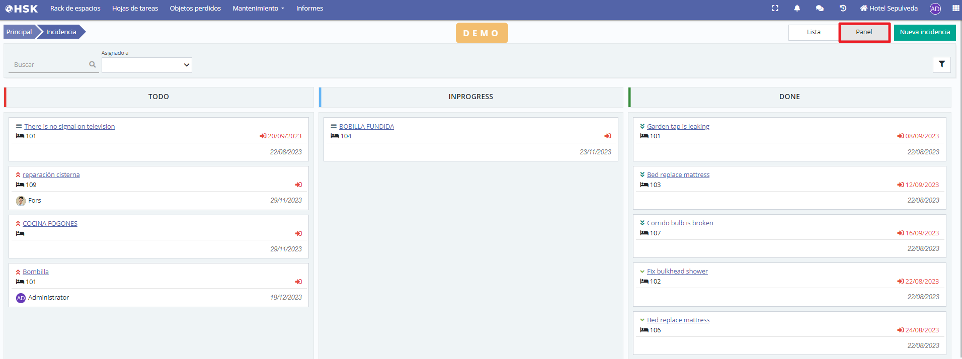 - New panel view in maintenance incidents.