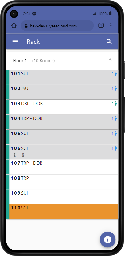 A search function has also been added to search by room name and guest name.