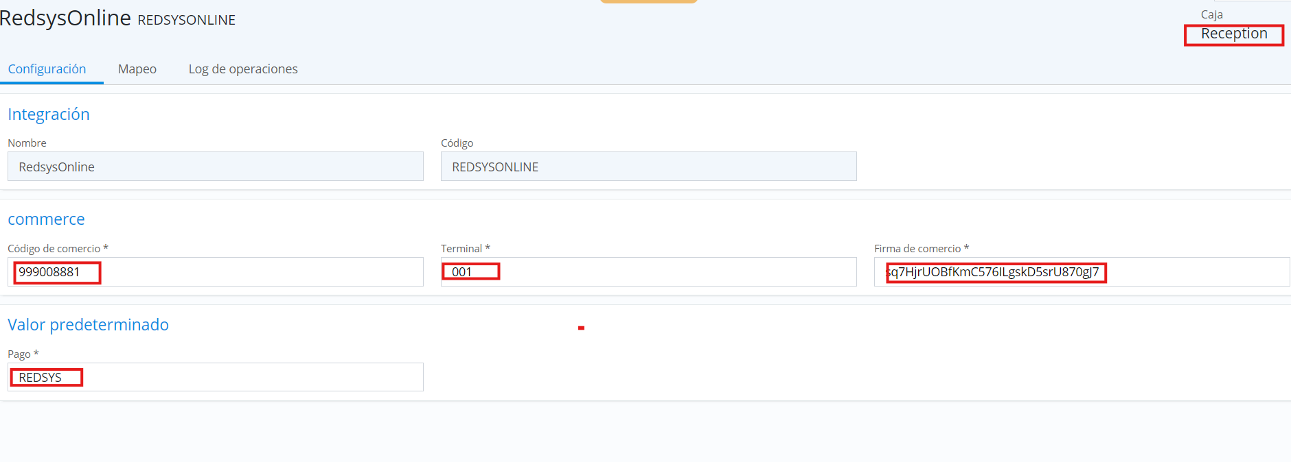 We will associate a default payment value, e.g.: Redysy, to differentiate payments and activate a cashier from the options, change cashier.
