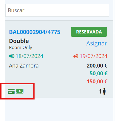 In the client's reservation it will be shown in green that the card is valid and we have a deposit.