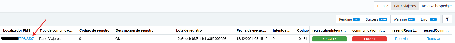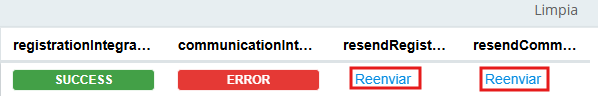 If a record has not been processed correctly, you can force its resending from the integration itself, using the "resend" options. If the error occurred in the sending process, use the option available in the "resendRegistration" column. If, on the other hand, the error occurred in the response from hospedajes, use the option available in the "resendCommunication" column.