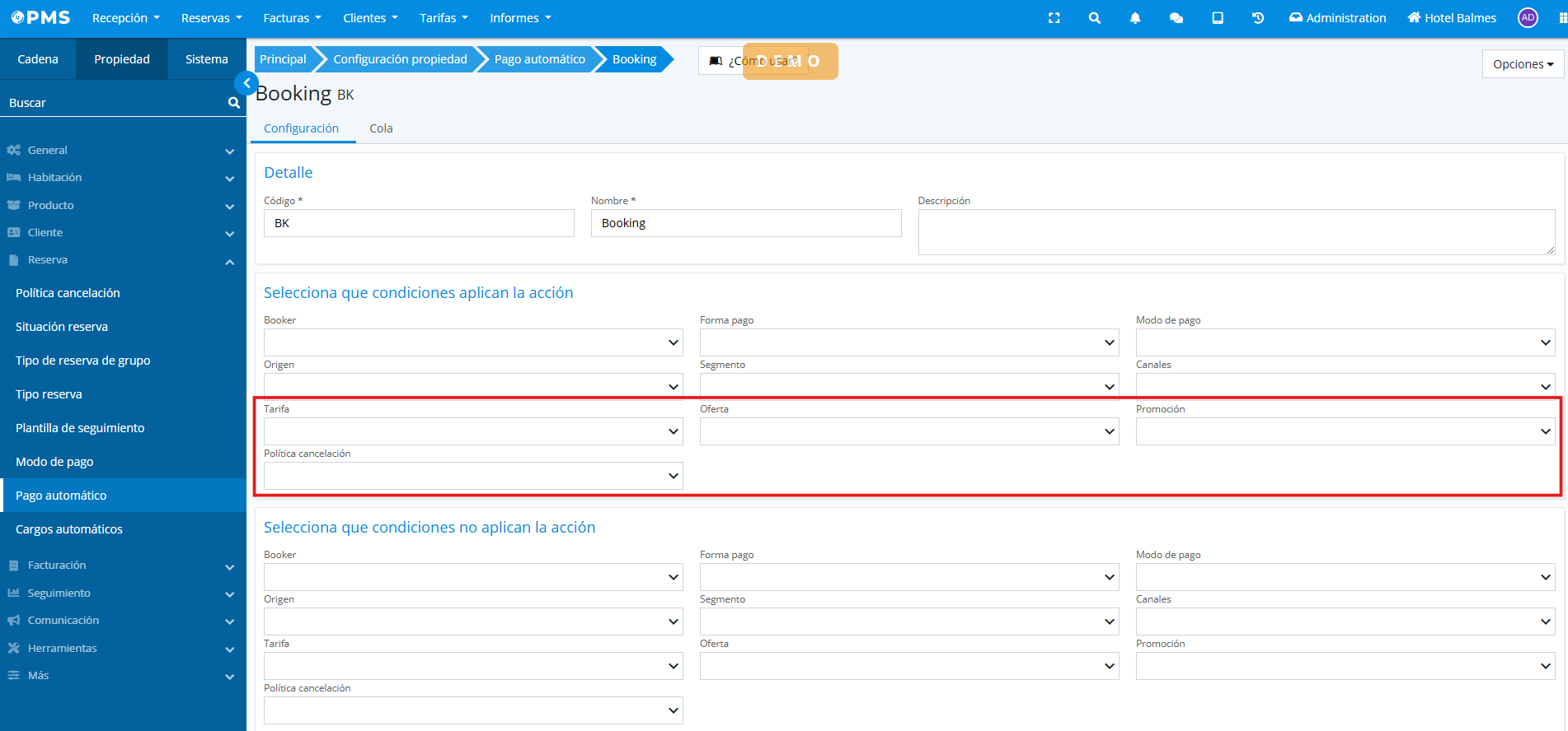 This way, we can better restrict what conditions must (or must not) be met for the PMS to execute automatic charge and card request actions.