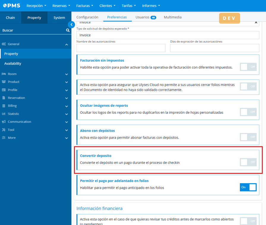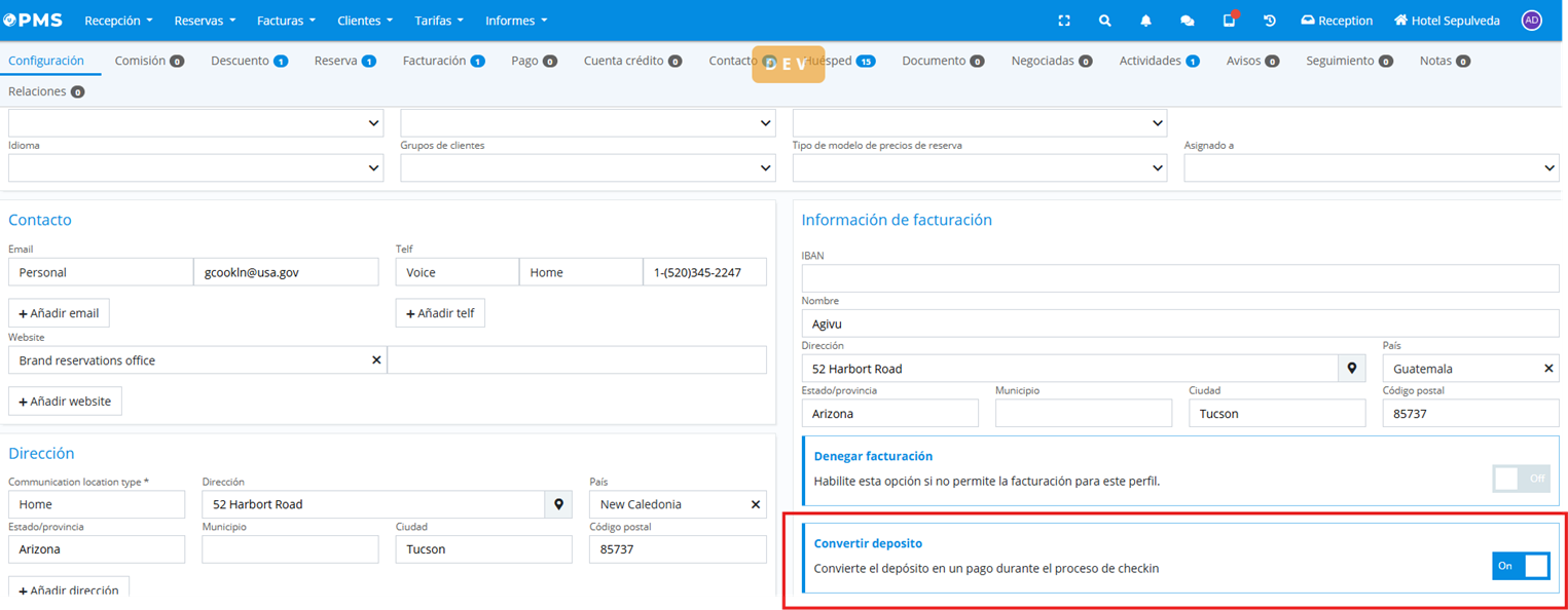 Thus, when checking in a reservation that meets the above conditions and has a deposit issued with tax, it will be automatically credited and a payment will be generated in the folio: