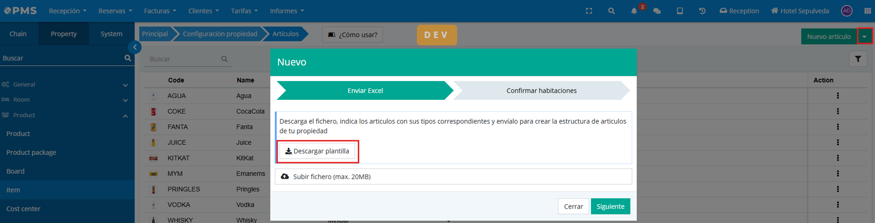 It is now possible to download an Excel template to fill out and thus create articles in bulk.
