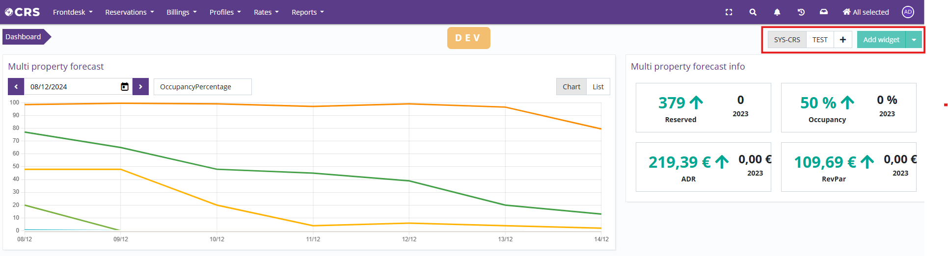 Possibility to customize CRS dashboardJust as in PMS, each user can now customize the dashboard in CRS as they see fit: