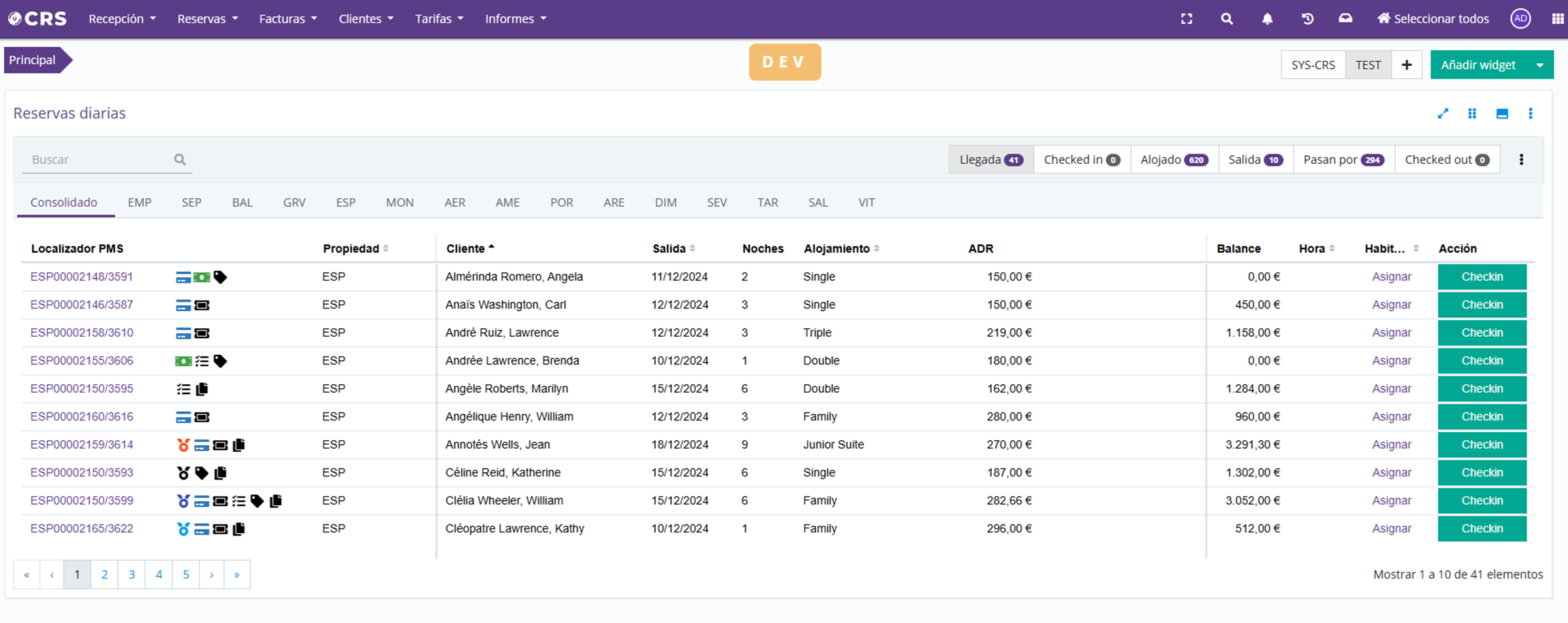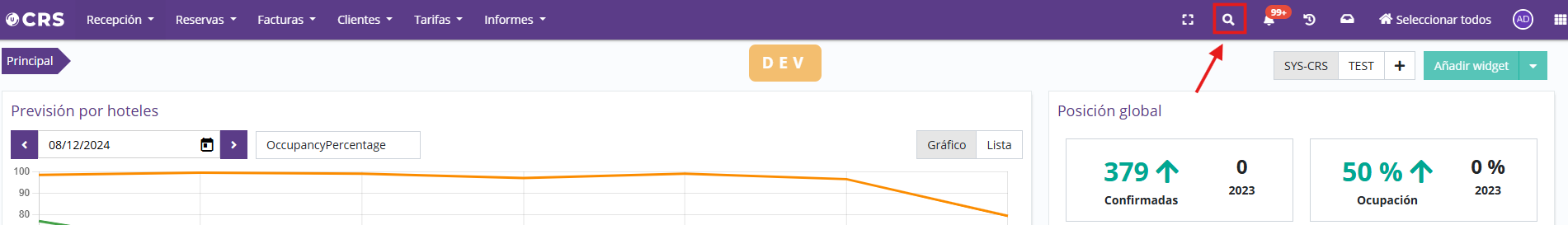 Multi-hotel daily reservations widgetIt is now possible to add a multi-hotel daily reservations widget from the customized CRS dashboard, so you can perform actions for different hotels (for example, for receptions managing two or more properties):