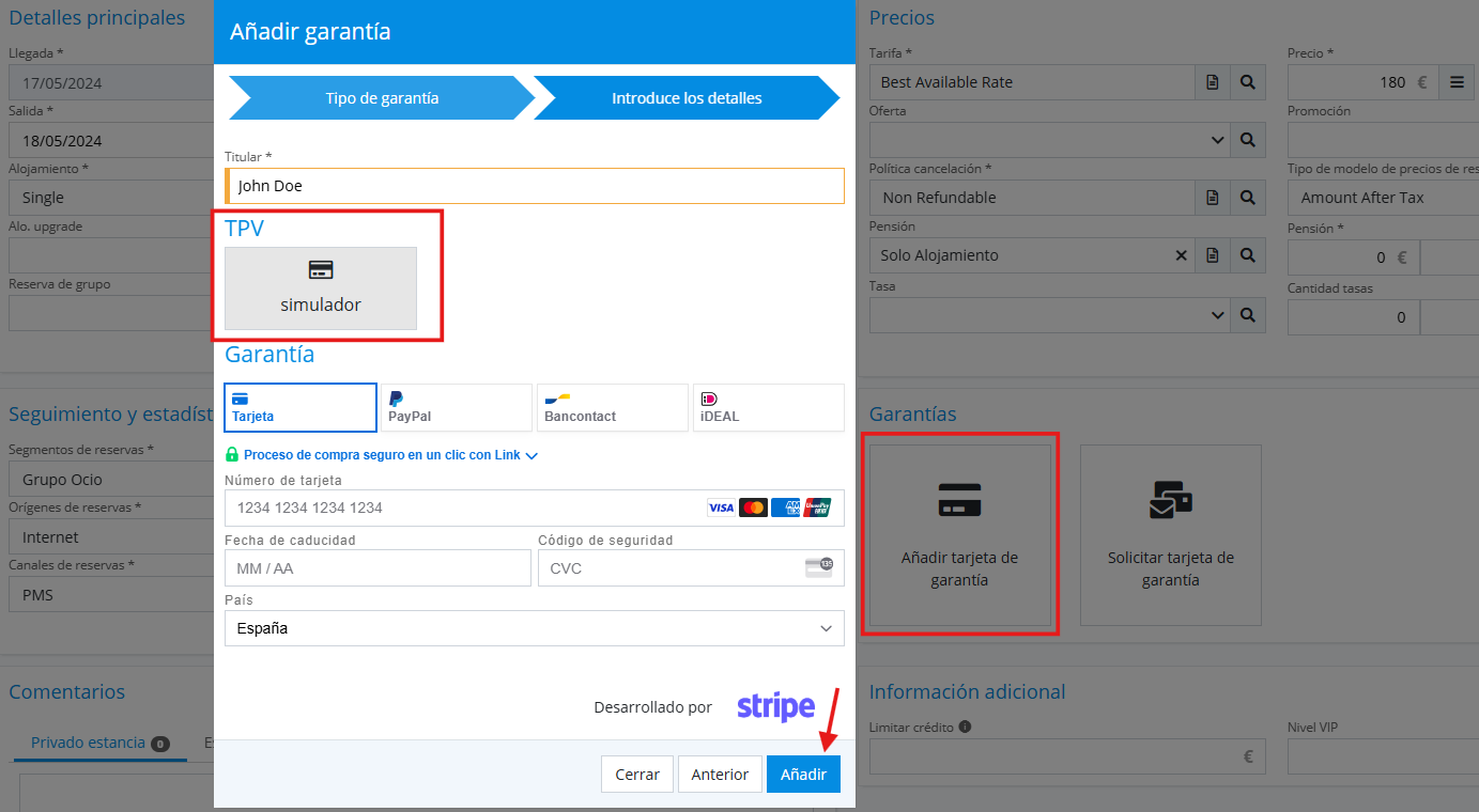 MarketplaceStripe physical terminalAs of version 3.2, it is now possible to capture guarantee cards through Stripe's physical terminals, using the "add guarantee" option, either during check-in or during the stay itself.