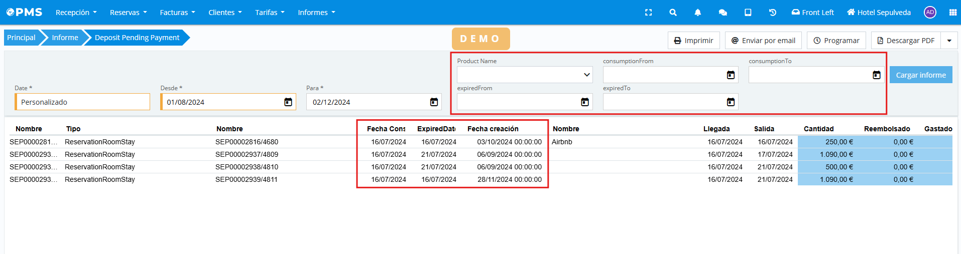 Filters and information provided by the "Deposit Pending Payment" report have been improved. Now, in addition to being able to filter by creation date of deposits that are pending payment, you can also filter by expected consumption date as well as by payment release date: