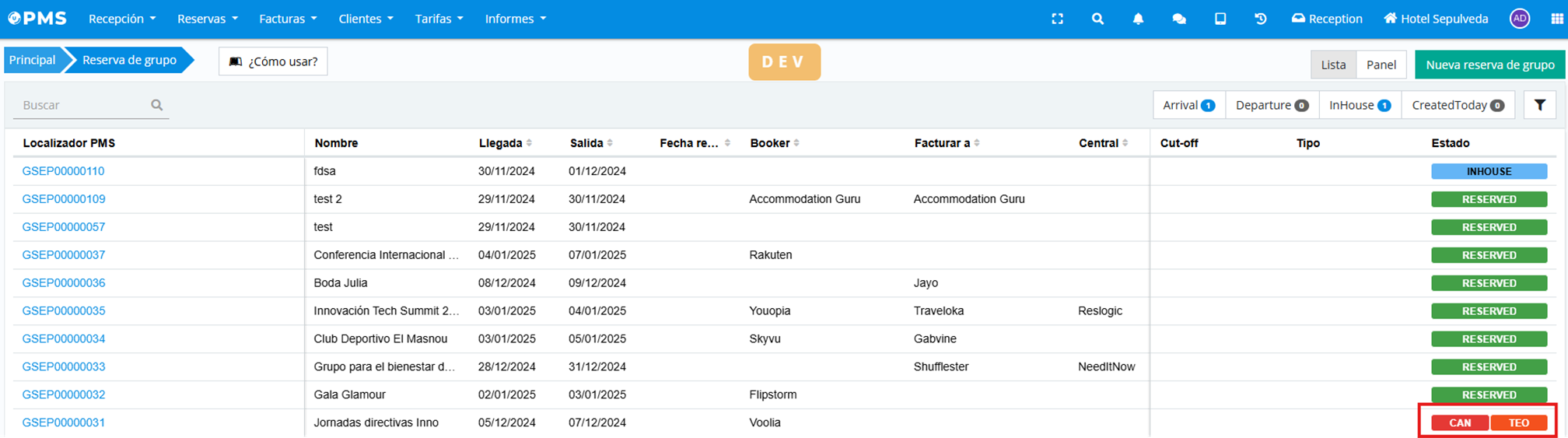 It is now possible to view the status of a group or individual reservation prior to its cancellation, as long as it was different from “reserved”.