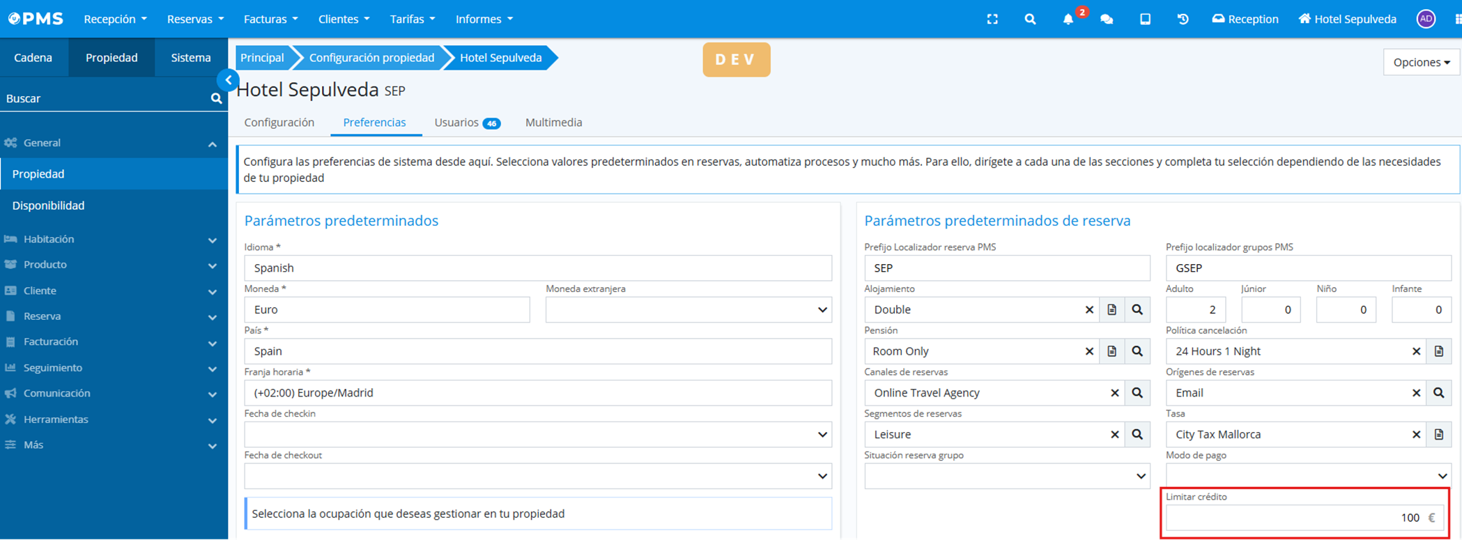 New credit limit parameter in property preferences