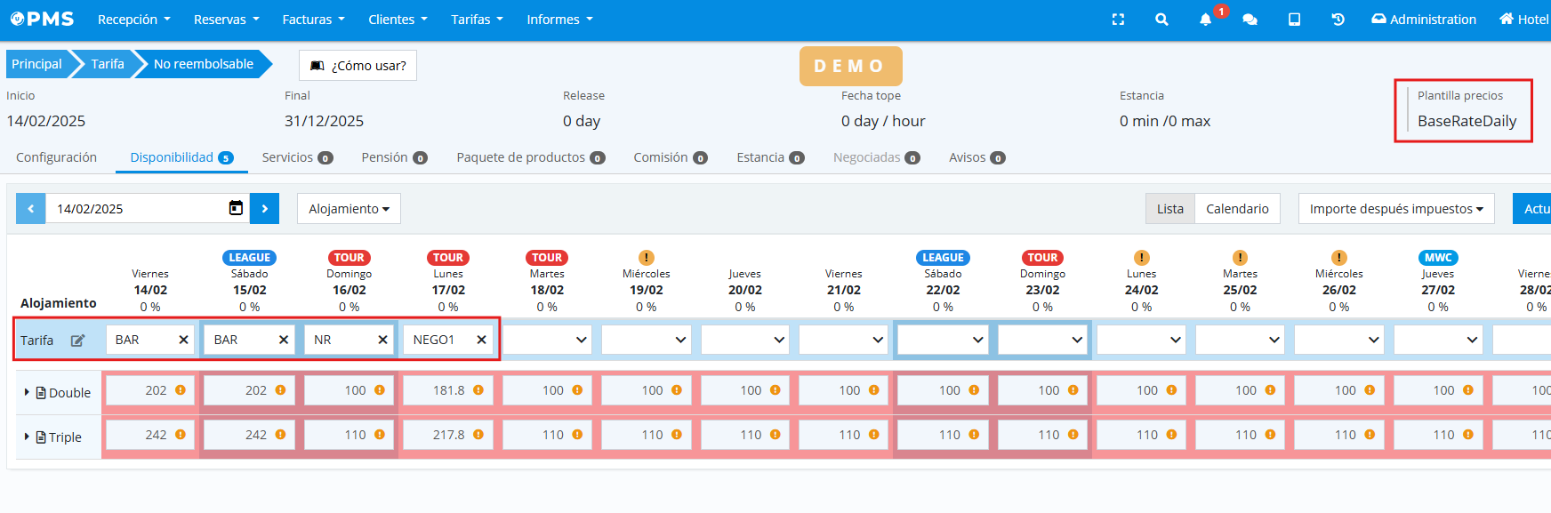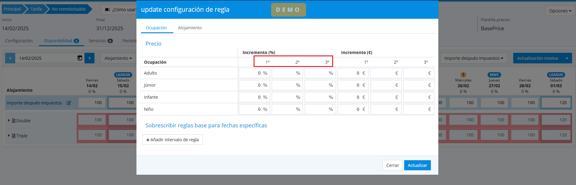 The process for creating price rules in base price rates has been improved; it is now possible to configure different price rules for second and third companions.