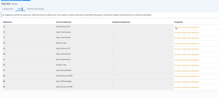 In the links in the Property column, map each room with the Yacan keys (including those for building access or common areas). Each room can be associated with more than one key depending on the doors to which access is granted.