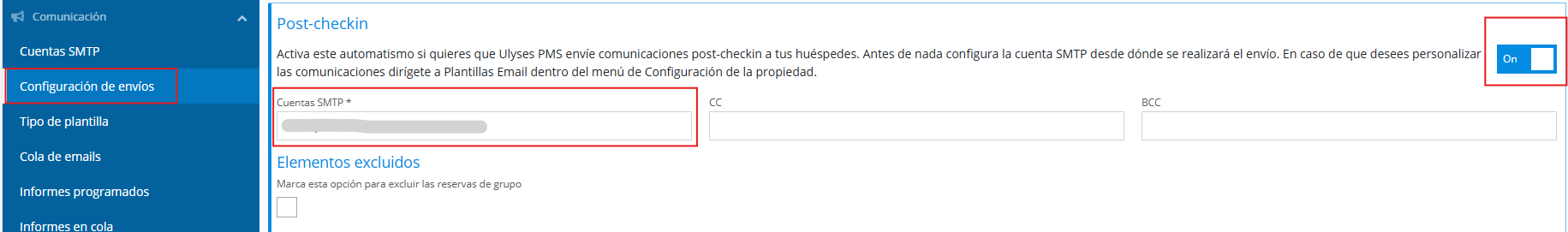In the Communications section, in the Property Configuration. Enable Post-checkin sending. Indicate the SMTP account for sending emails.