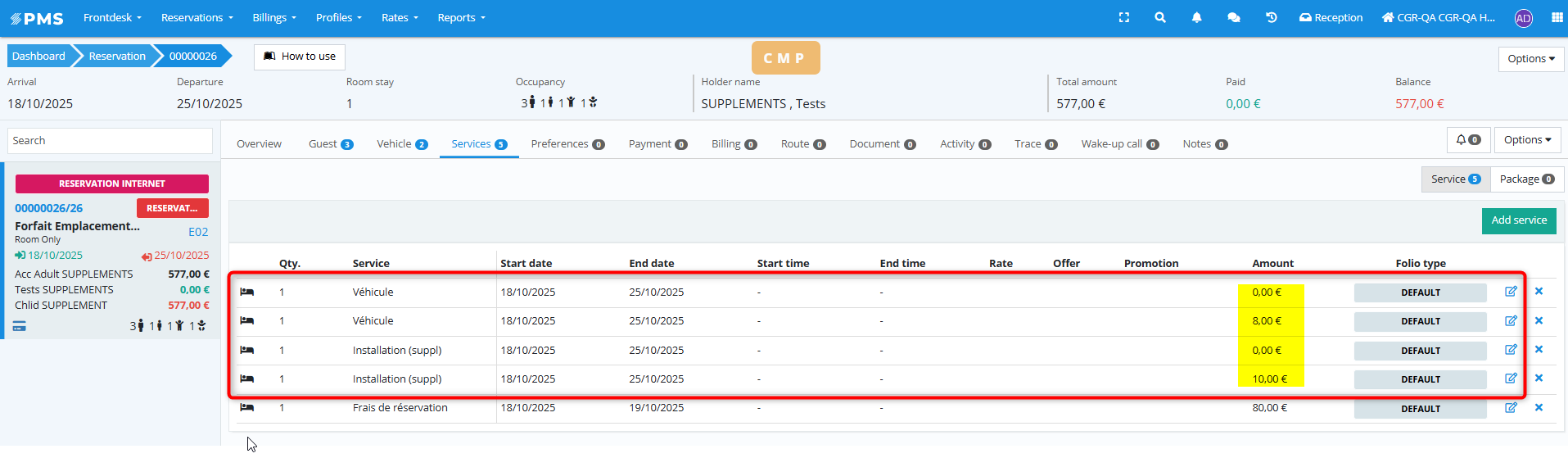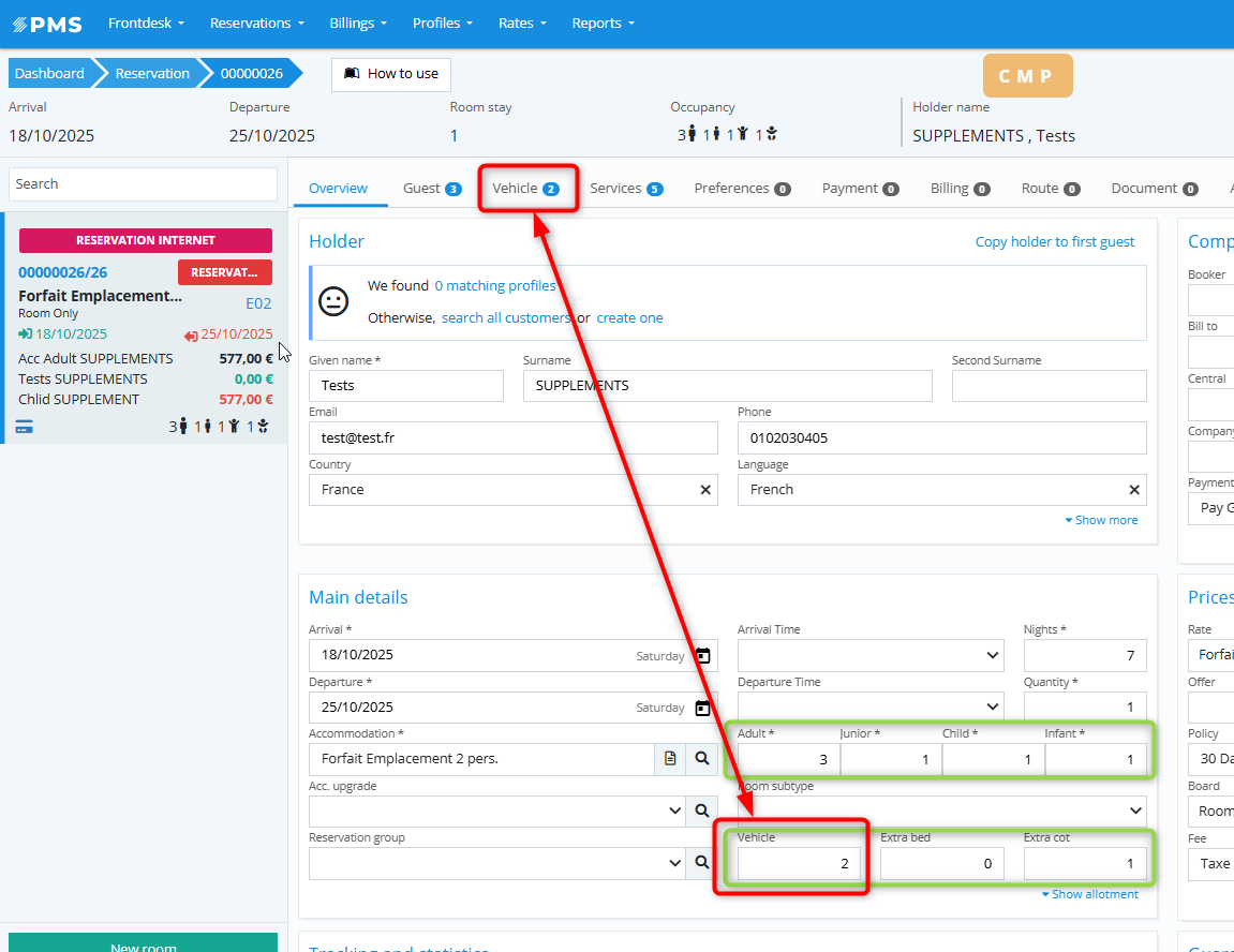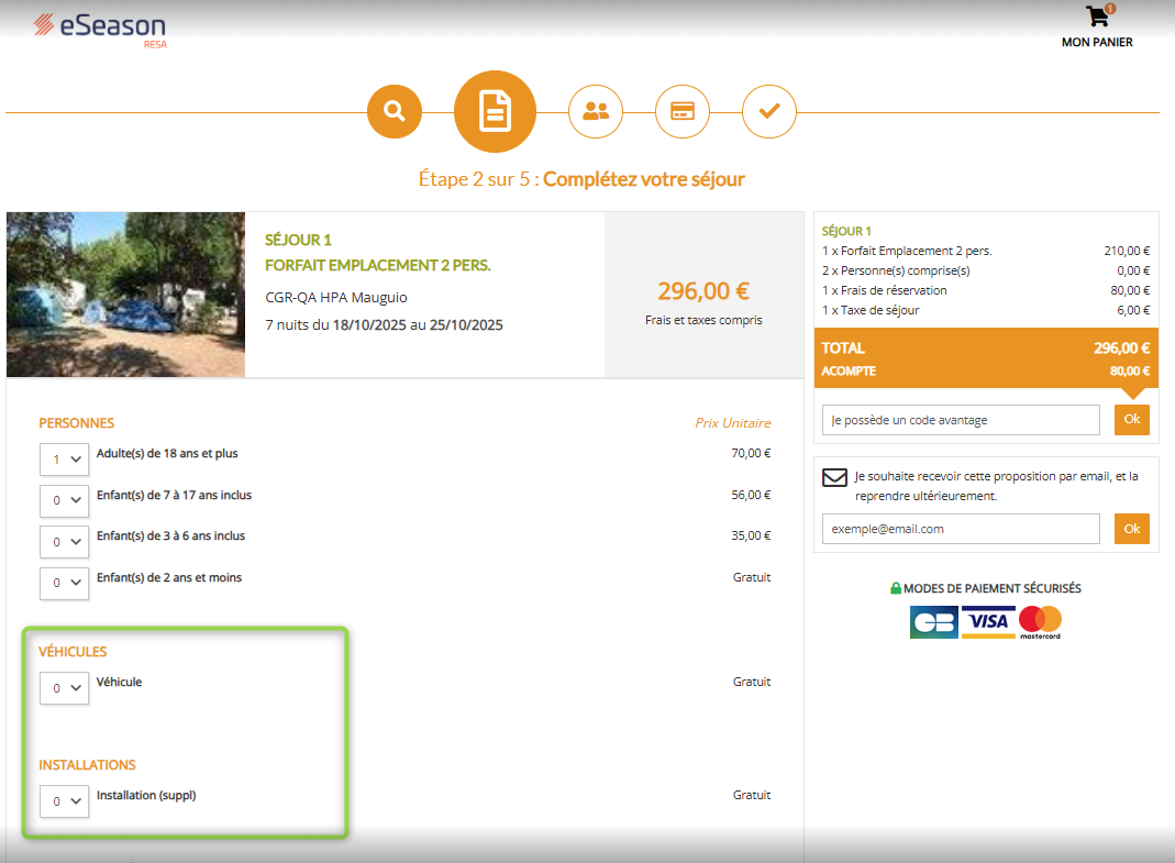 In Webcamp, from the eSeason Resa booking tunnel, the management of vehicles and installations is applied automatically according to the rate parameters.