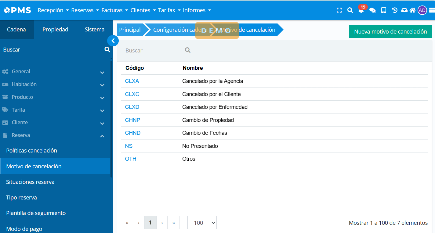 When we cancel reservations or refund a charge in a Ulyses PMS folio, the system will ask us for the reason why we want to perform this action. To prevent reception or back office from having to enter the reason manually, we provide a series of default reasons. If we want to add, delete, or modify these default reasons, we can do so from Cancellation Reason or Charge Refund Reason in the chain menu.
