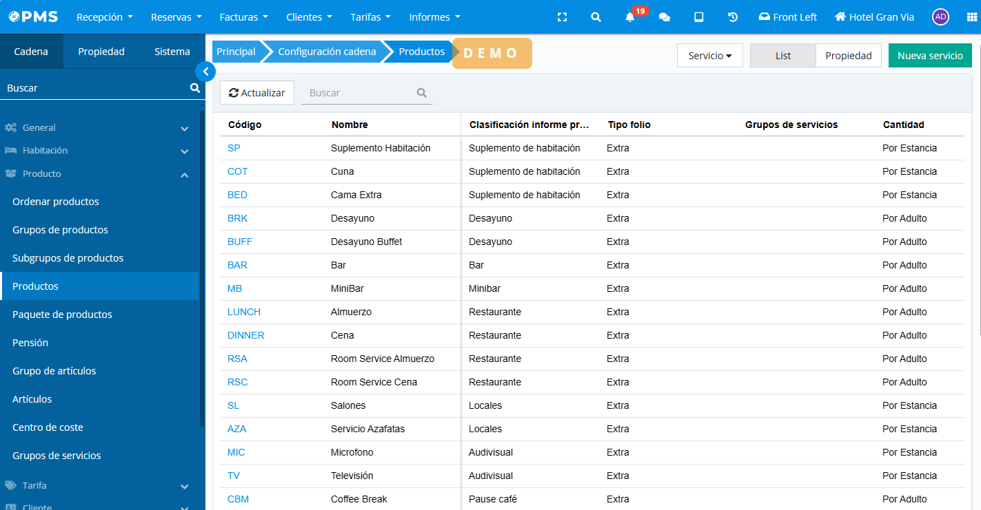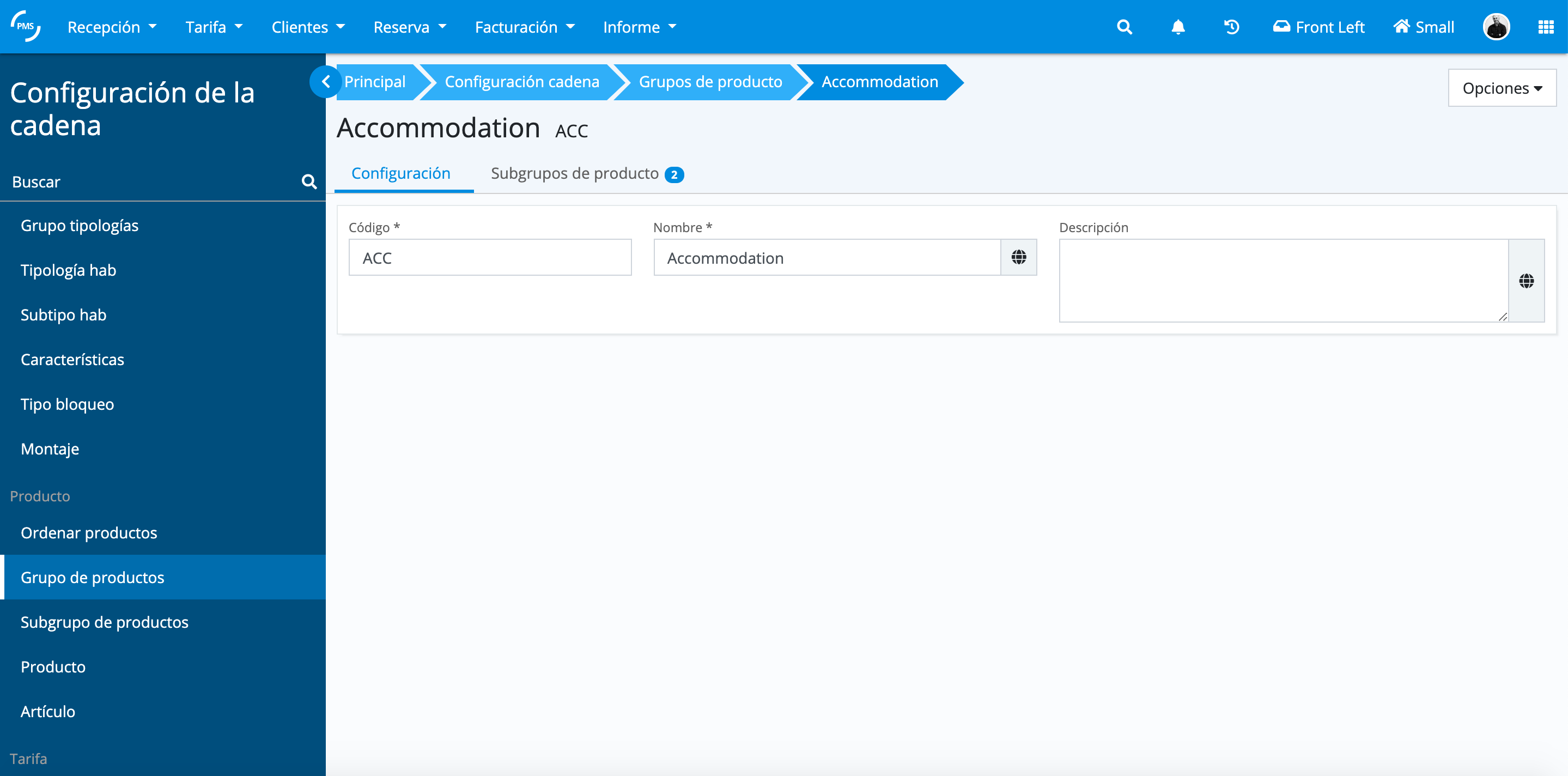 Due to the large number of products and services that exist in the accommodation industry, Ulyses Cloud allows the distribution of all products into groups and subgroups that will later help us generate more grouped reports. Although Ulyses Cloud has some groups and subgroups already created by default, it is necessary to understand the following operations