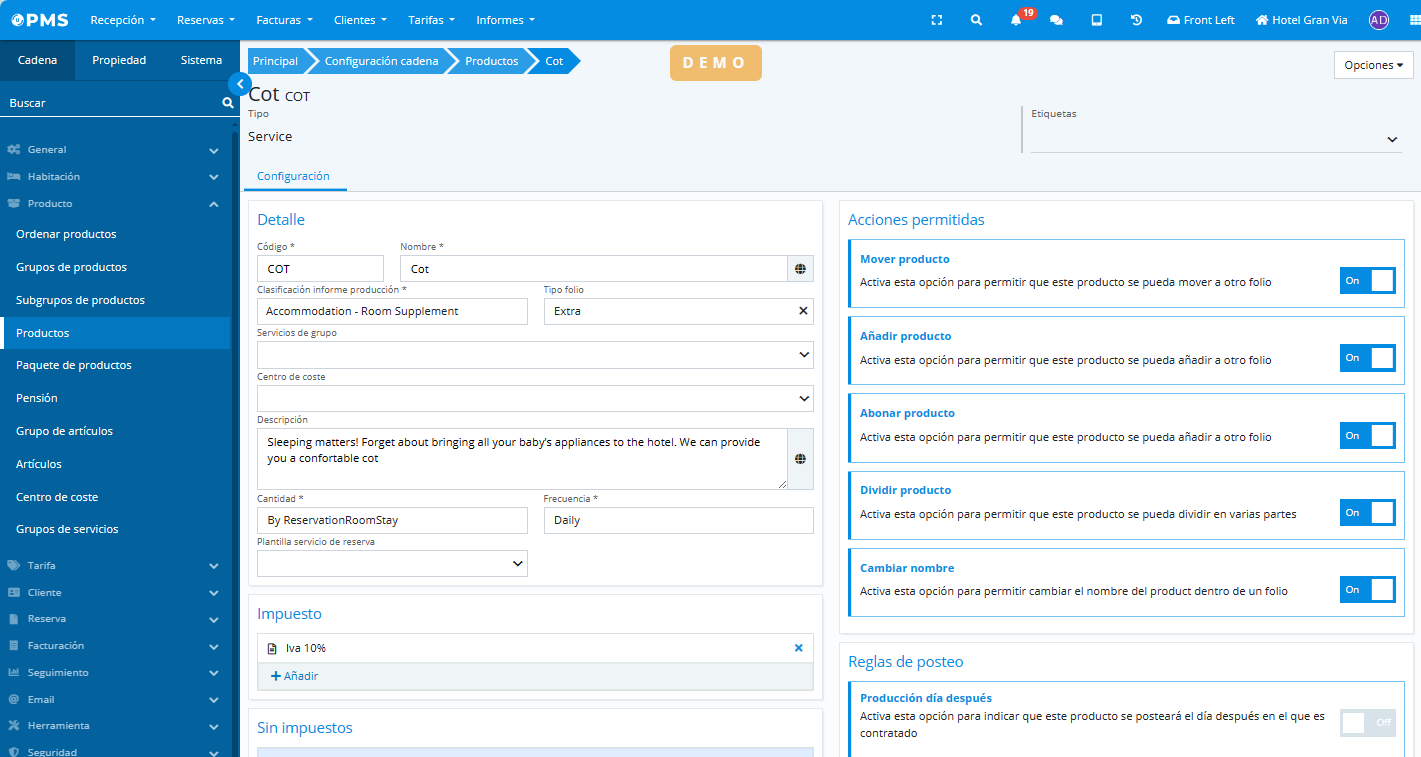 Products in Ulyses Cloud are production units that can be added as charges to invoices, either referring to consumption or referring to payments, discounts, commissions, or taxes, and on which the hotelier will later generate the production report.