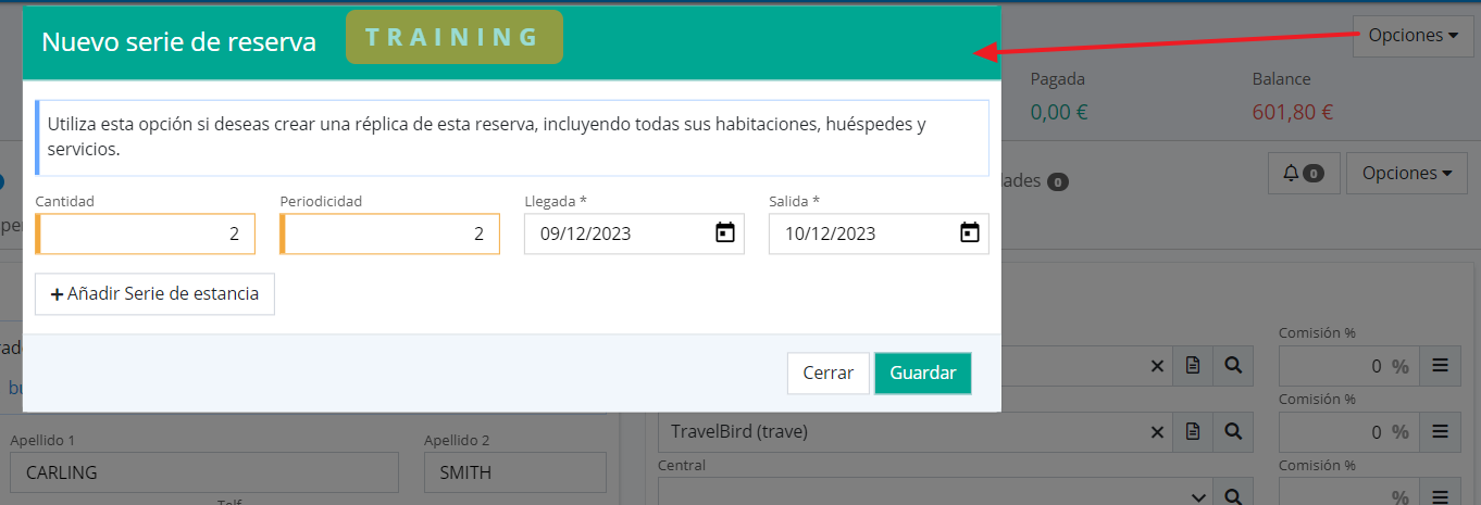 A stay series consists of copying the stay you are currently viewing and pasting as many replicas as you wish within the same reservation. To do this: