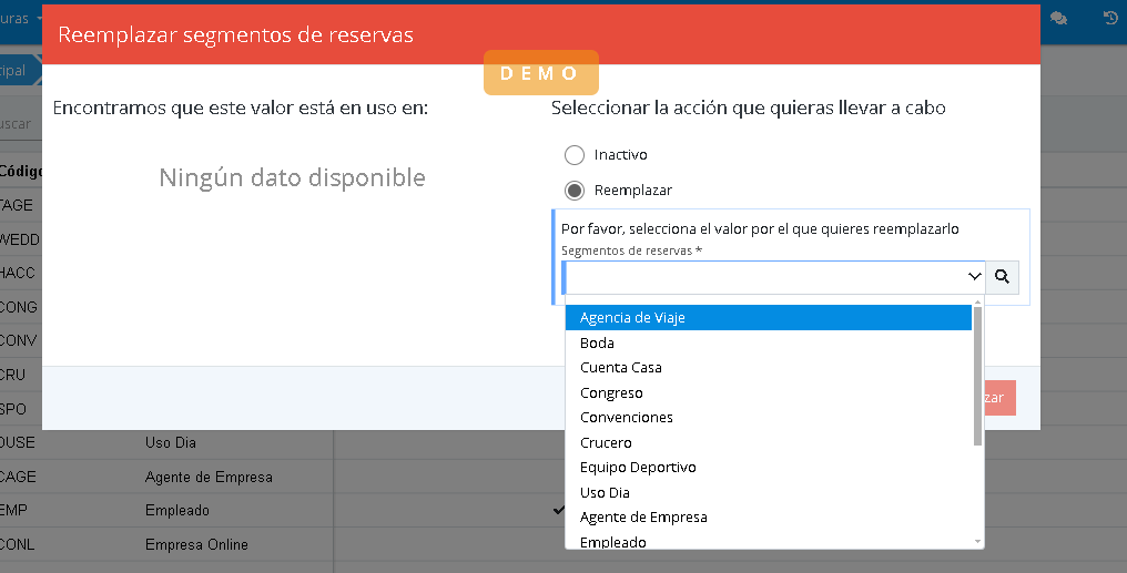To delete entities, we just need to make sure that the value does not have dependencies with other entities. That is, it is not assigned in any reservation, offer, promotion, or other entities.