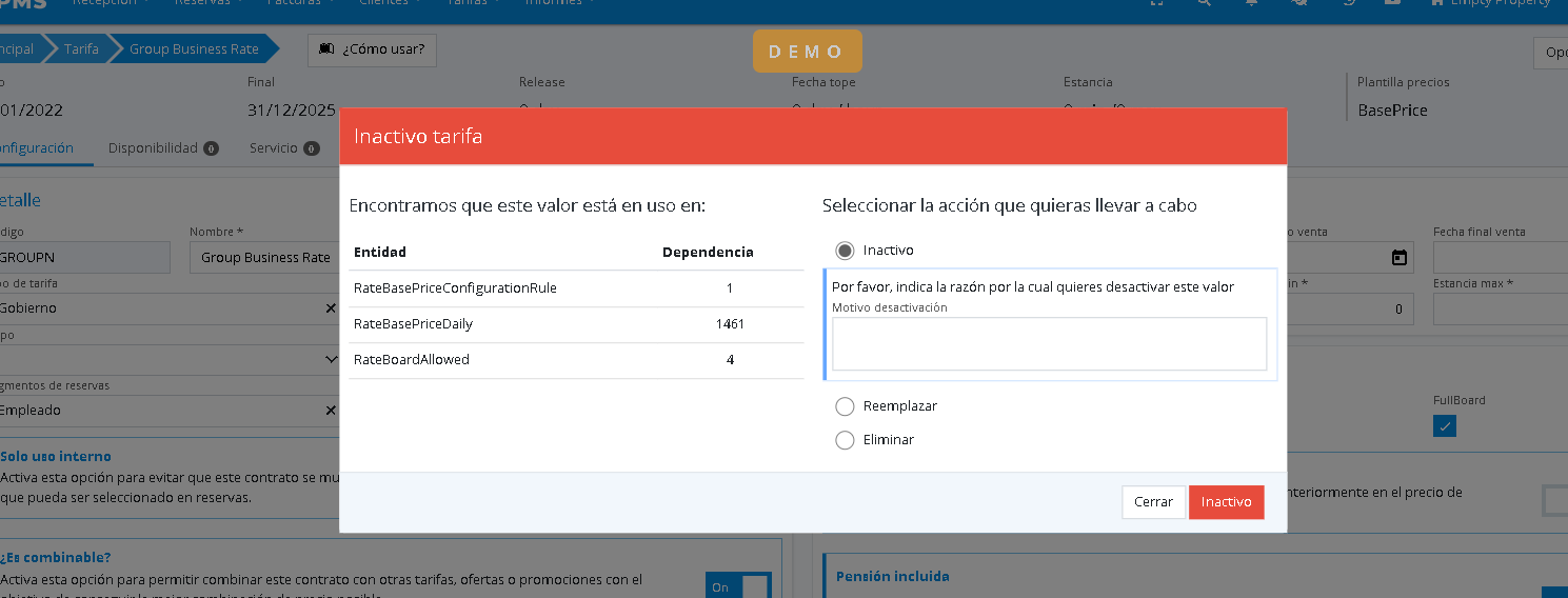 For example, if we are in a reservation and want to change the rate to another whose value is deactivated. Or simply, when accessing the reservation, it turns out that it has a value that was deactivated at some point.