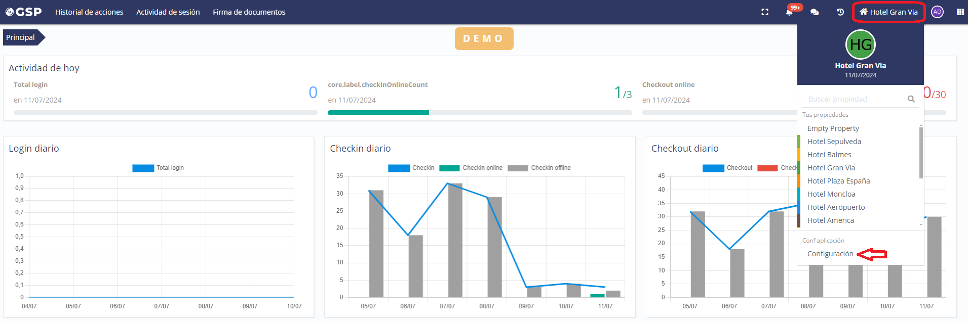 Once inside the GSP application, you must access the configuration section: