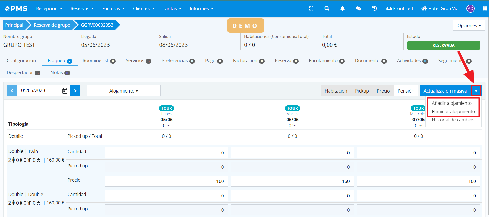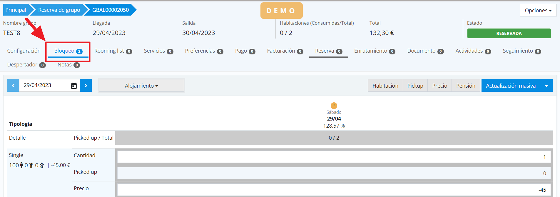 In summary, through the block tab in the group reservation, we can perform the following actions: