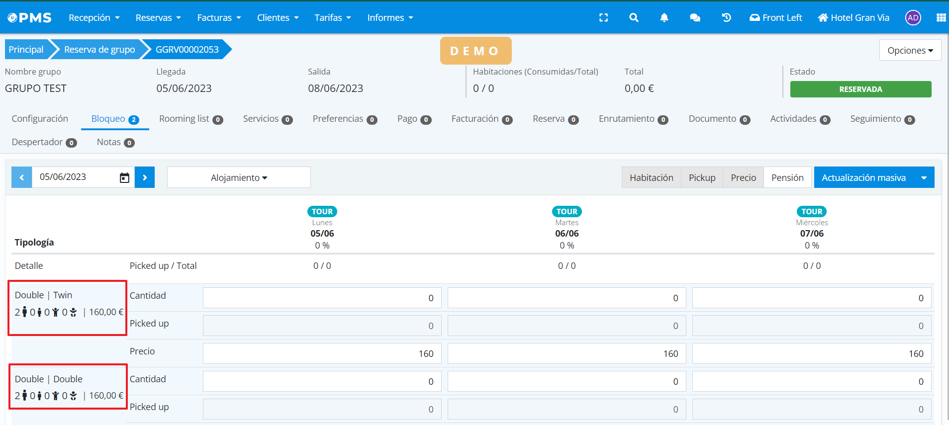 Therefore, the first thing we have to do when creating a group block is to add the different room types and subtypes that we have offered to the agency or company.