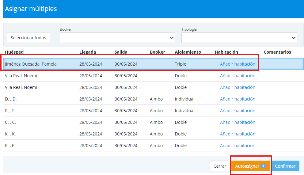 In this case, a modal will appear with all the bookings pending assignment, from where you can manually assign each one through Add room or select the stays you want to Auto-assign.
