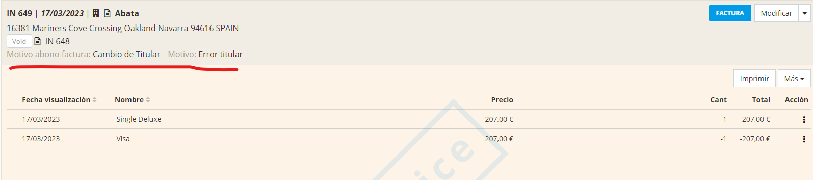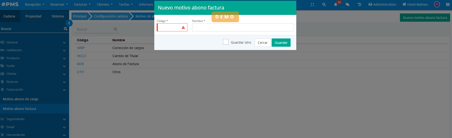 To configure the different credit reasons for an invoice, which will then be reflected in the invoices themselves, proceed as follows: