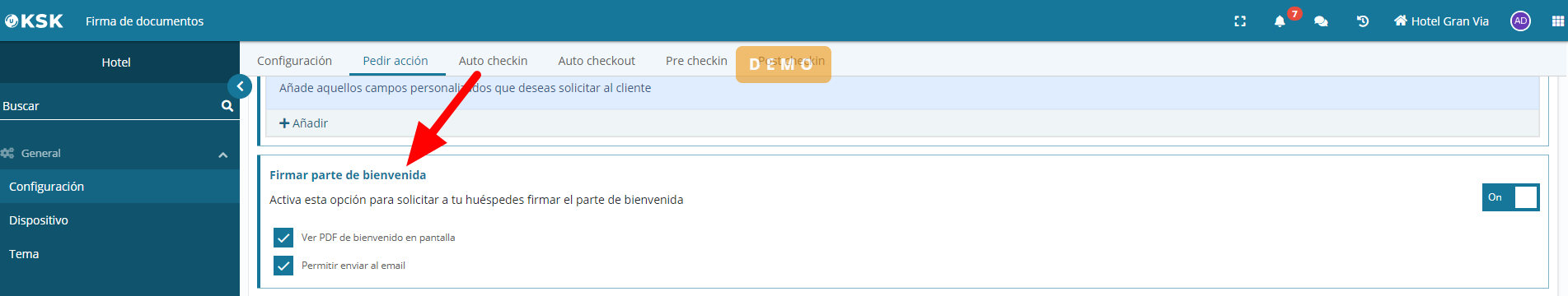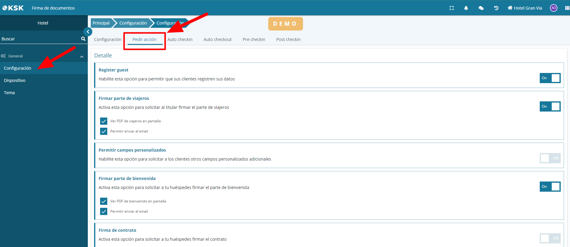 Additionally, you will have the option to enable the viewing of the document in PDF format on the tablet screen. You can also enable the option to send the signed document by email, making it easier for guests to receive a digitally signed copy of the traveler form for their personal records or future reference.