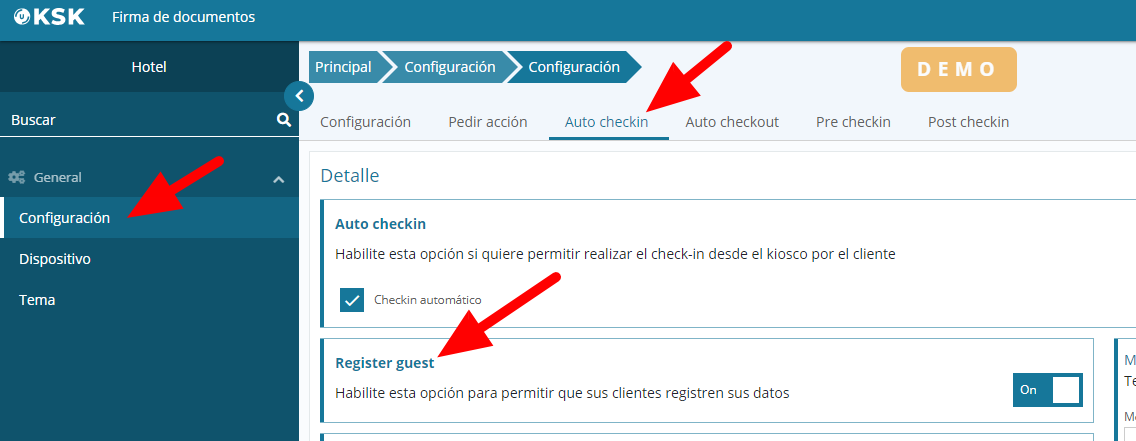 In this section, you can configure a series of actions that will allow Ulyses KSK to function as a self check-in system for guests. This will give them the ability to complete the entire check-in process by themselves.