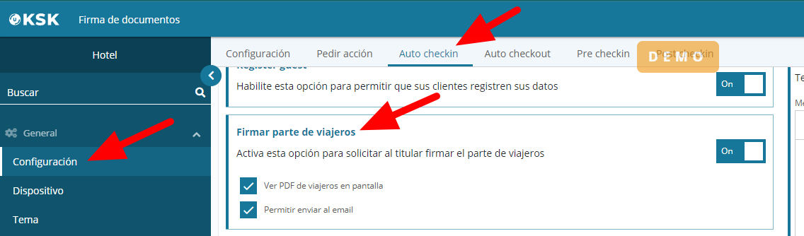 Additionally, you will have the option to enable the display of the document in PDF format on the tablet screen. You can also enable the option to send the document by email once it is signed, making it easier for guests to receive a digitally signed copy of the traveler form for their personal records or future reference.