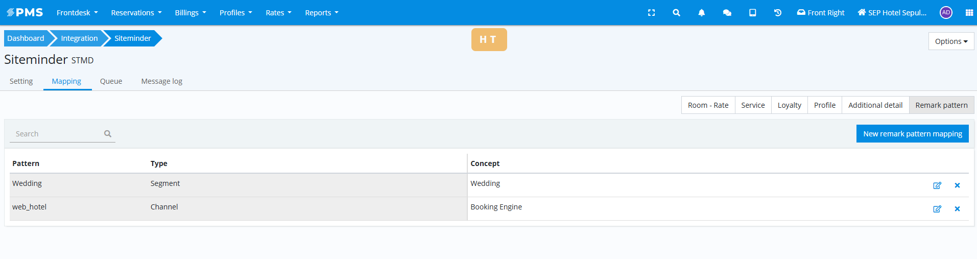 Por ejemplo, si se desea que siempre que llegue en comentarios el texto "web_hotel", se actualice el canal de la estancia para que se indique "Booking Engine", lo mapearemos de la siguiente forma: