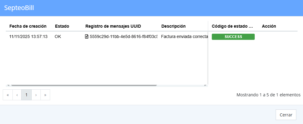Visualización de estado de facturas enviadas