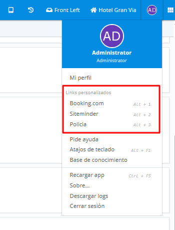 Posteriormente serán accesibles desde el menú superior en cualquier parte de la aplicación.