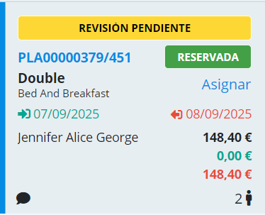Tras seleccionar un tipo de reserva veremos que la miniatura de la estancia muestra el tipo de reserva en la parte superior.