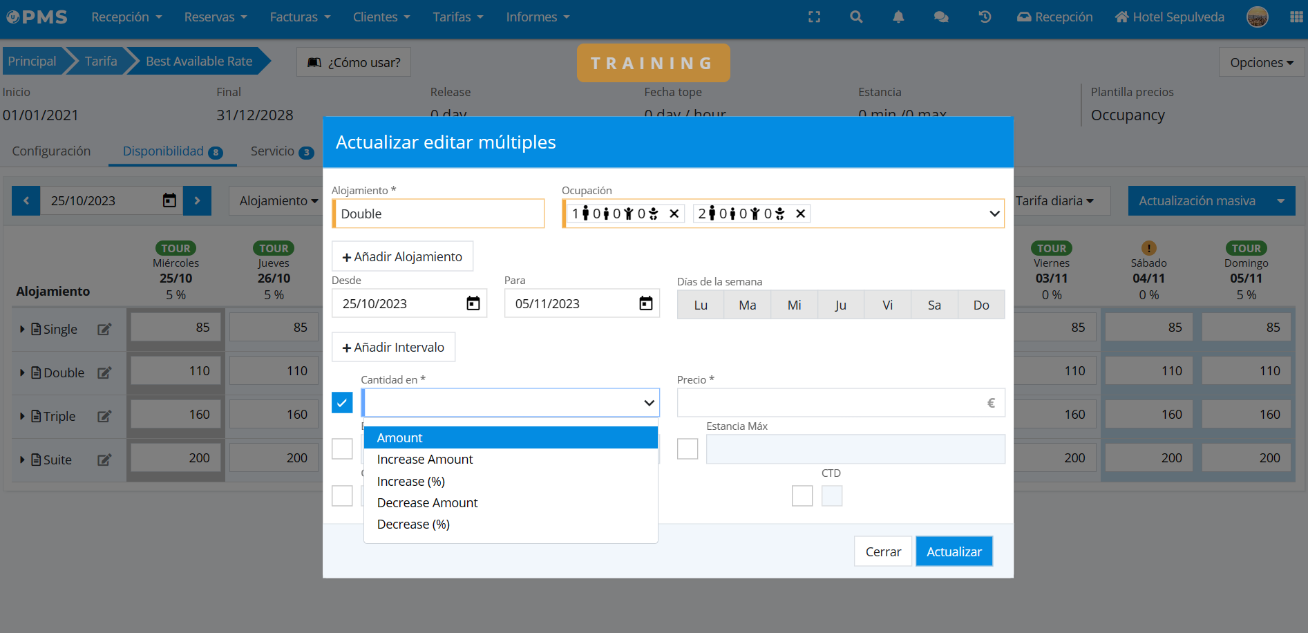 Para subir o bajar precios durante un período seguiremos los siguientes pasos