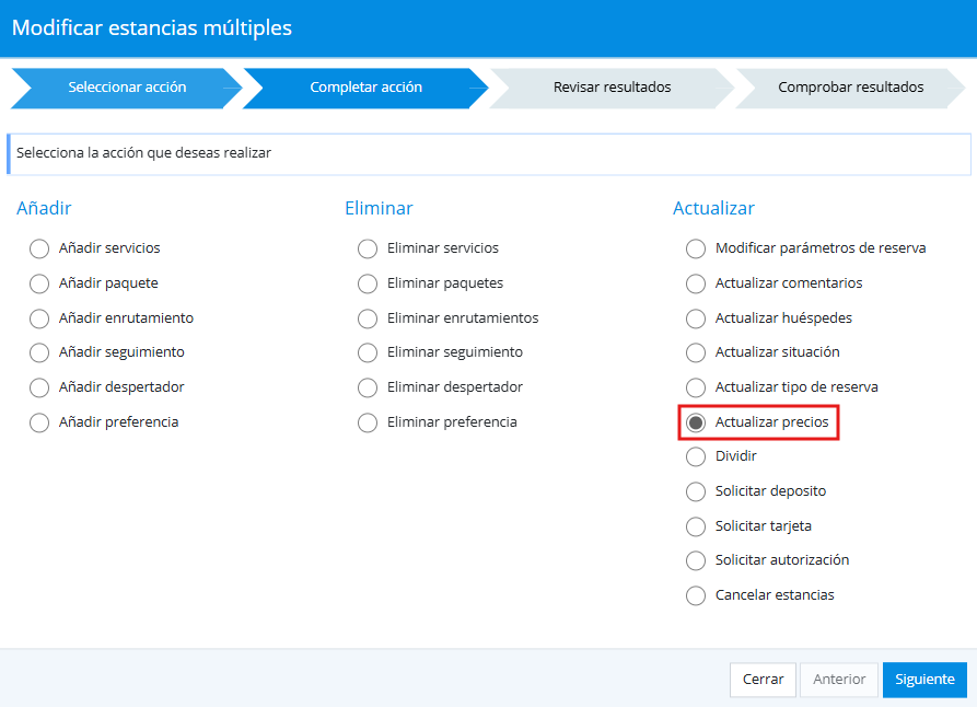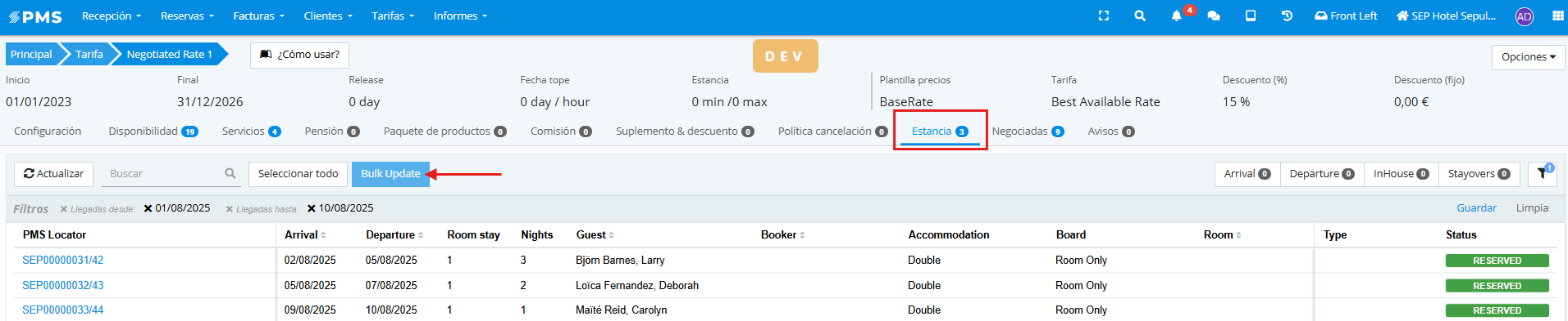 En la versión 3.4 se ha incorporado la opción de actualizar de forma masiva el precio de reservas existentes dentro de una misma tarifa.