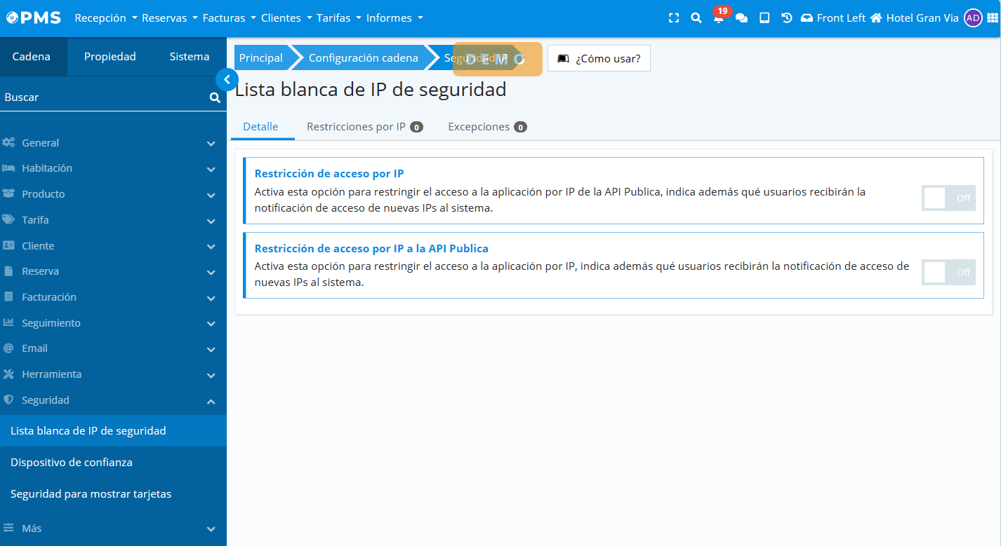 - Posteriormente desde la pestaña Detalle activaremos el switch y seleccionaremos los usuarios pueden validar o denegar otras IPs desconocidas