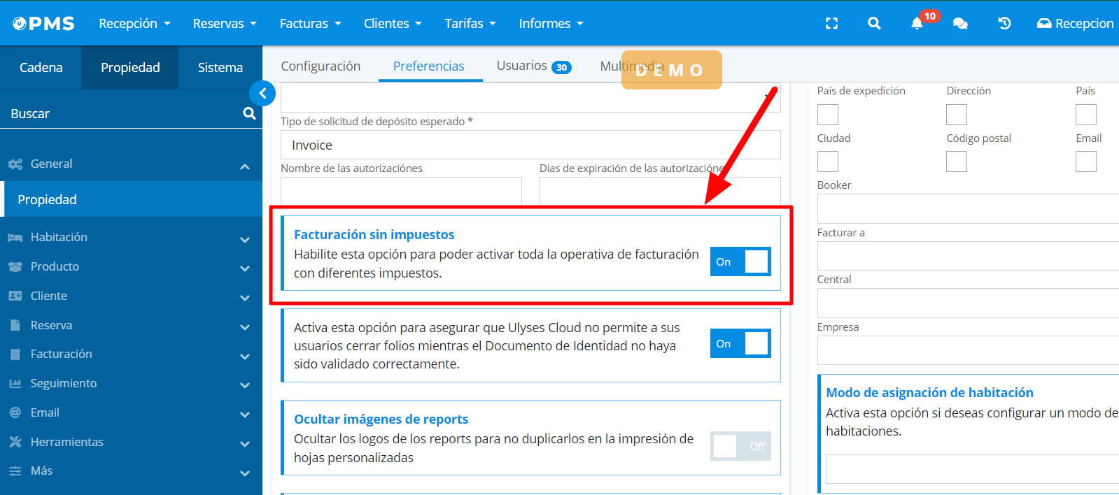 Configuration de la propriété > Général > Propriété > Préférences