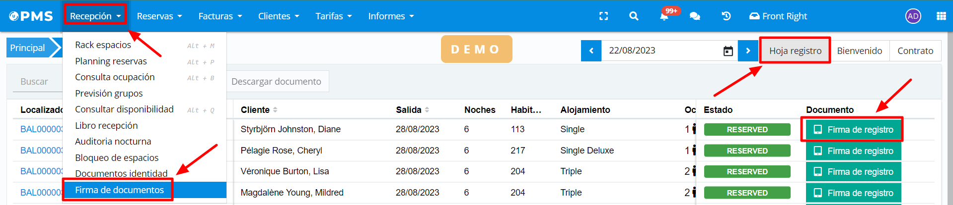 Pour lancer le processus manuellement depuis Ulyses, accédez simplement à la fiche client dans n'importe quelle réservation et sélectionnez l'option signature du registre.
