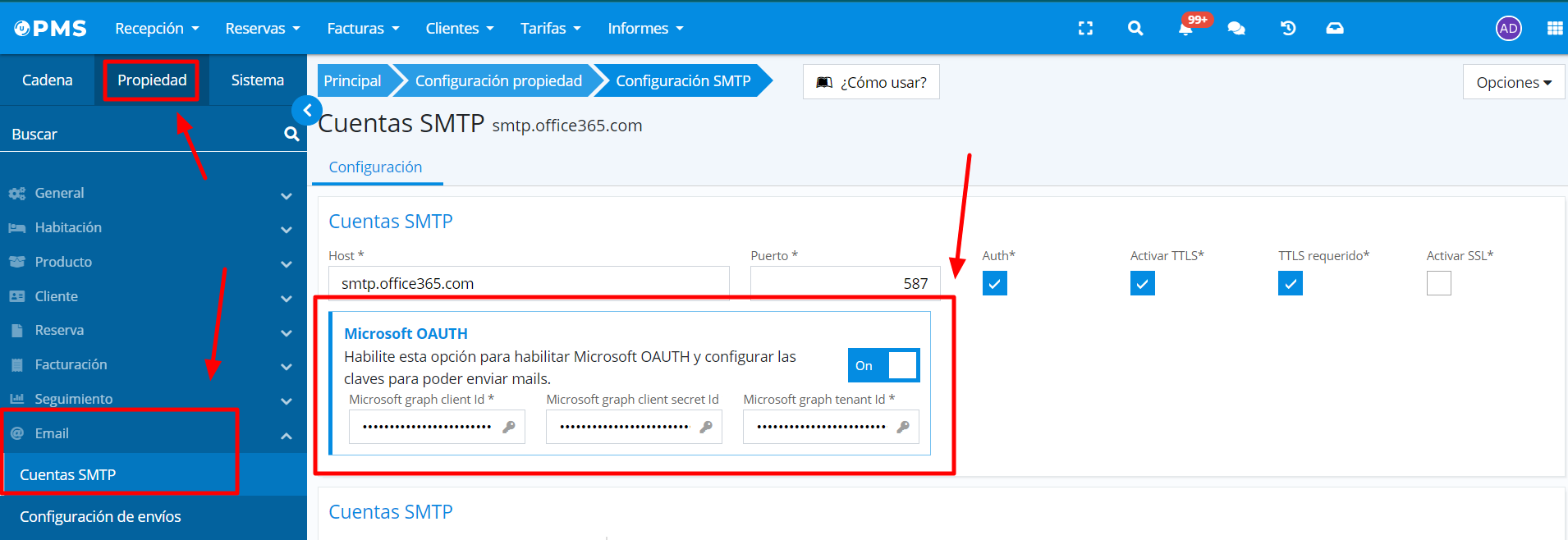 Vous devrez activer l'option Microsoft OAUTH et saisir les données demandées.