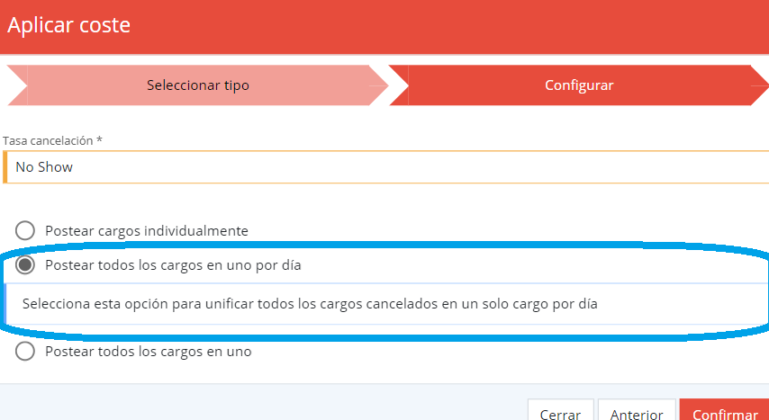 Nouvelle option : Production regroupée en un seul poste de frais d'annulation par jour :