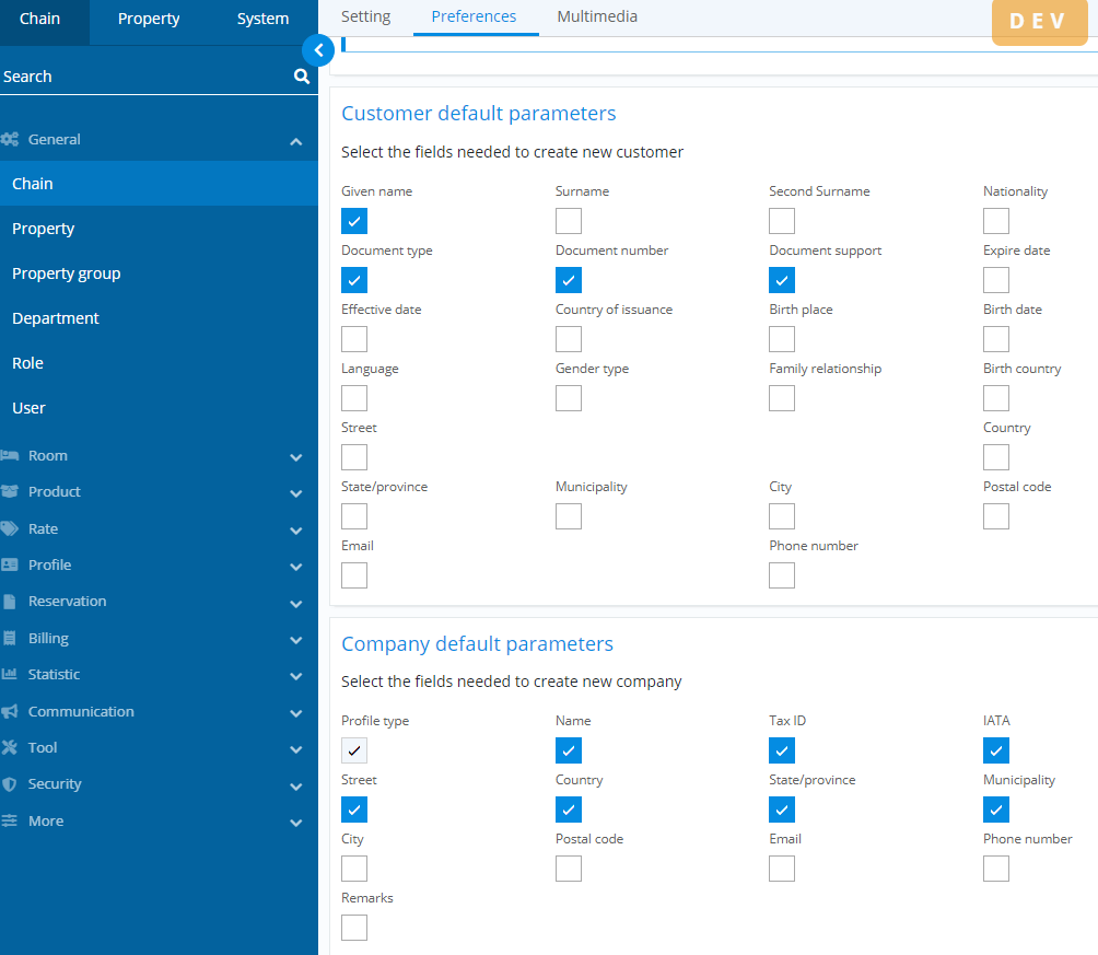 Depuis la configuration des préférences de la chaîne, cette version ajoute deux cases avec sélecteur de champs obligatoires lors de la création de profils client et entreprise.
